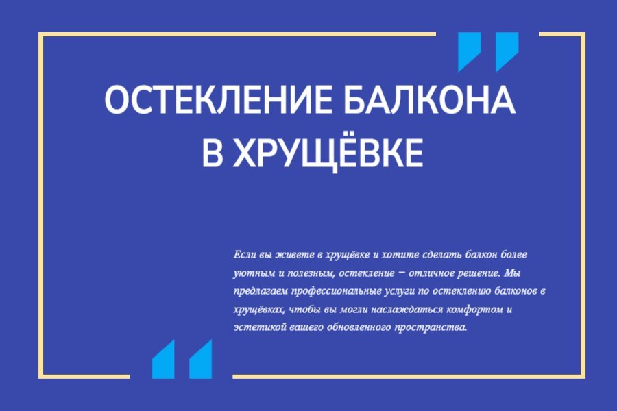 Наша строительная бригада имеет богатый опыт в остеклении балконов в хрущёвках и гарантирует высокий уровень сервиса на каждом этапе работы. Мы внимательно относимся к деталям и обеспечиваем, чтобы ваше остекление было выполнено качественно и в срок.